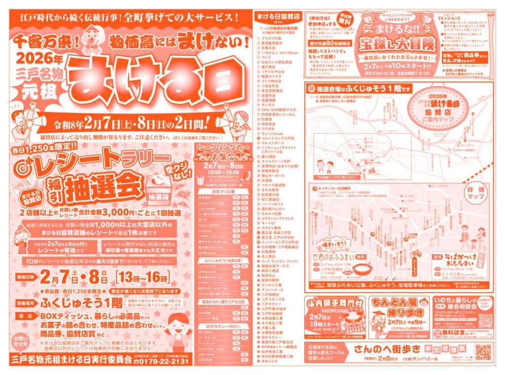 歴史ある三戸の商店街が、笑顔と“まける”でお迎えします。